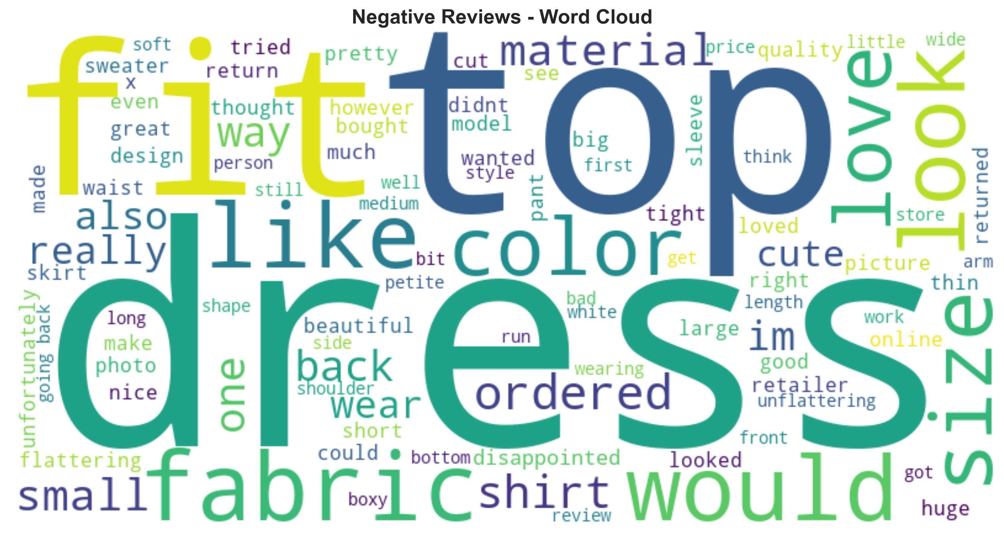 E-commerce companies collect thousands of customer reviews, but extracting actionable insights from unstructured feedback is challenging. Manual review analysis is time-consuming and subjective, making it difficult to systematically identify recurring product issues or emerging dissatisfaction patterns. Without automated sentiment analysis, businesses risk overlooking key drivers of negative customer experiences, such as sizing inconsistencies, fabric quality concerns, or product fit issues. A scalable approach is needed to analyze review text, quantify sentiment trends, and transform customer feedback into measurable product and service improvements.